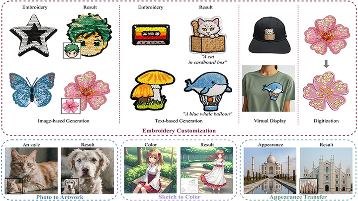 One-shot Embroidery Customization via Contrastive LoRA Modulation